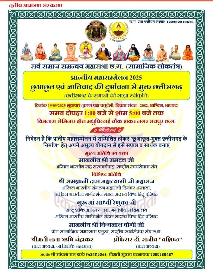 छत्तीसगढ़ को छुआछूत और जातिवाद से मुक्त करने ऐतिहासिक महासम्मेलन